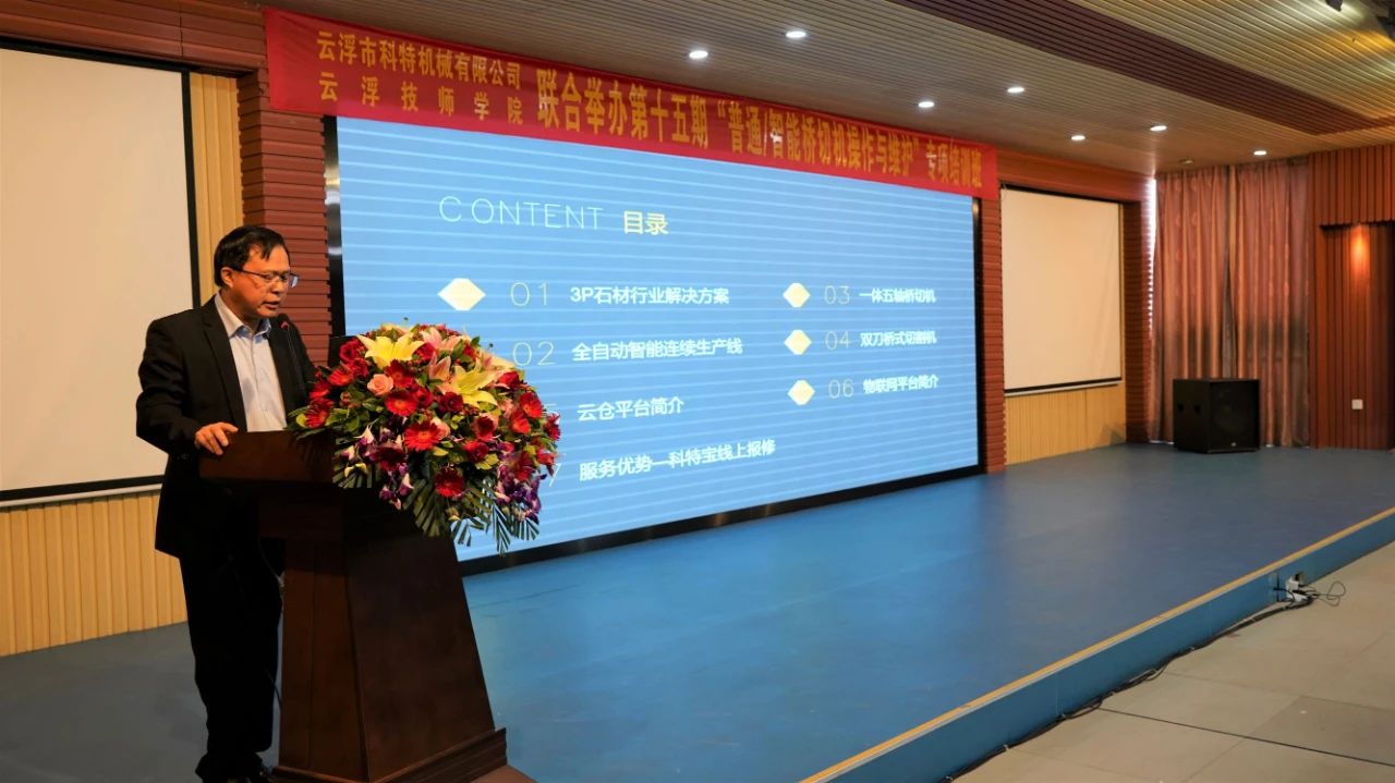 首先,科特機械董事長文智瑩和云浮技師學(xué)院代表覃勁,先后發(fā)表講話,對學(xué)員的到來,表示熱烈的歡迎和衷心的感謝,并希望學(xué)員們能學(xué)有所獲。